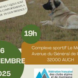 26 NOVEMBRE 2025 - 19h00 - salle du MOUZON à AUCHA l'initiative du club , une conférence sur les chiens de protection des troupeaux